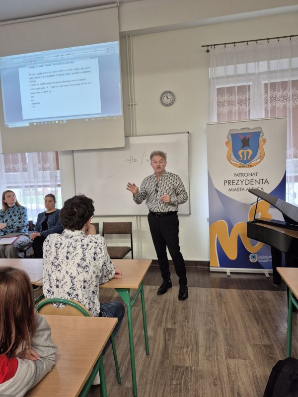 Następnie dr Marek Paduch, nauczyciel I LO w Mielcu i wykładowca Uniwersytetu Andrzeja Frycza Modrzewskiego w Krakowie, przeprowadził konwersatorium akademickie w języku angielskim nt. „English Pronunciation in Use” (tł.: „Wymowa angielska w użyciu”).