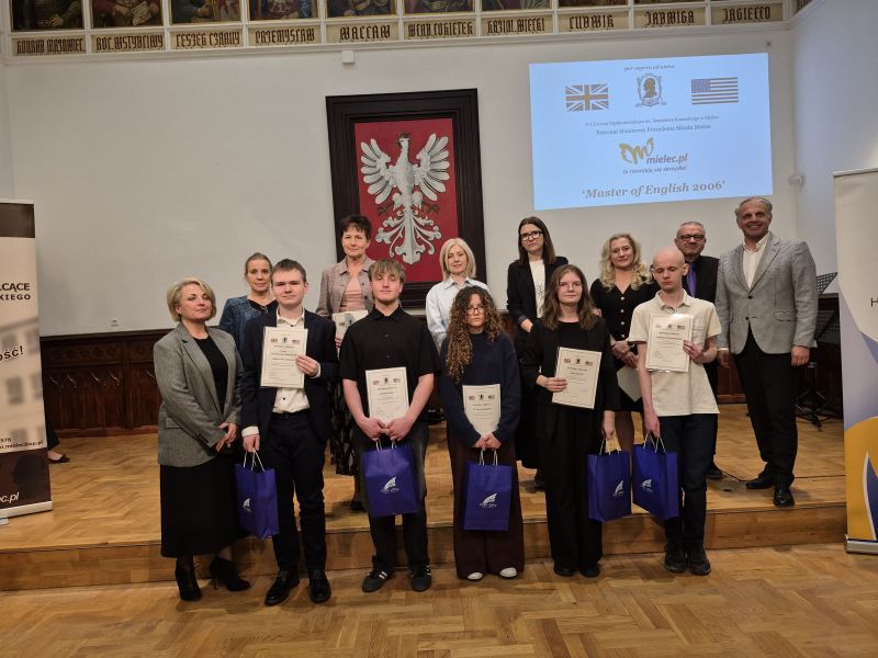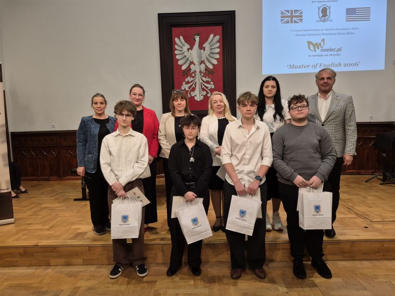 Laureatami olimpiady „Master of English 2026” zostali: Sebastian Ochalik (tytuł „Master of English 2026” – II LO, opiekun Elżbieta Łukaszek), Daria Kopacz (II LO, opiekun Beata Szpakowska-Machniak), Iga Gowarzewska (I LO, opiekun Marek Paduch), Tomasz Lelakowski (ZST, opiekun Urszula Kozik) oraz Kasper Kilian (V LO, opiekun Lucyna Przybyło). Natomiast wyróżnienia otrzymali: Maksymilian Zych (ZSB, opiekun Beata Węgrzyn-Kilian), Maciej Tyrpa (ZS Radomyśl, opiekun Barbara Kazimierska), Marcin Bąk (ZSE, opiekun Katarzyna Kmieć) oraz Amanda Fornal (ZSCKR Rzemień, opiekun Beata Zorzycka). Sponsorami nagród i upominków byli: Prezydent Miasta Mielca, firma Sierosławski Group Mielec oraz firma PZL Mielec.